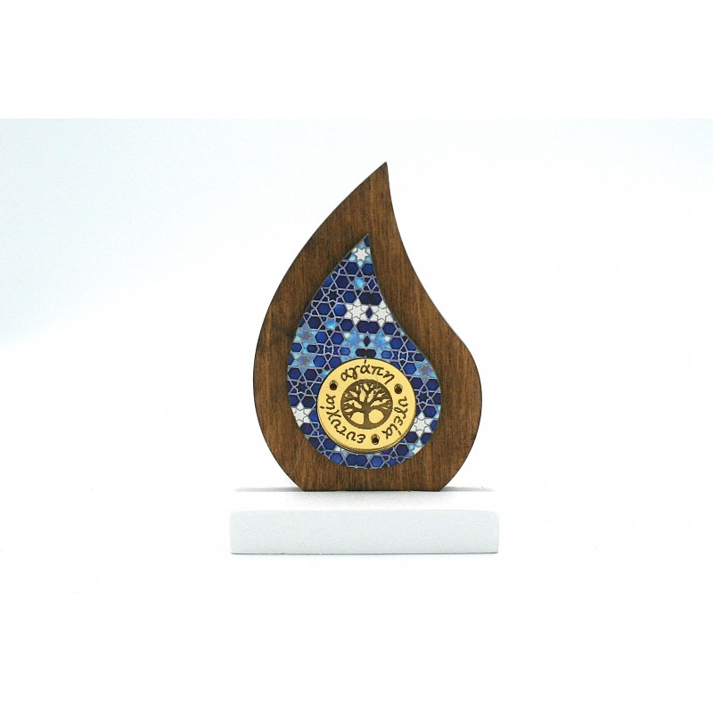 Βότσαλο διακοσμητικό Χριστουγεννιάτικο με σχέδιο δάκρυ ξυλινο με plexiglass στα 11cm χρώμα μπλε