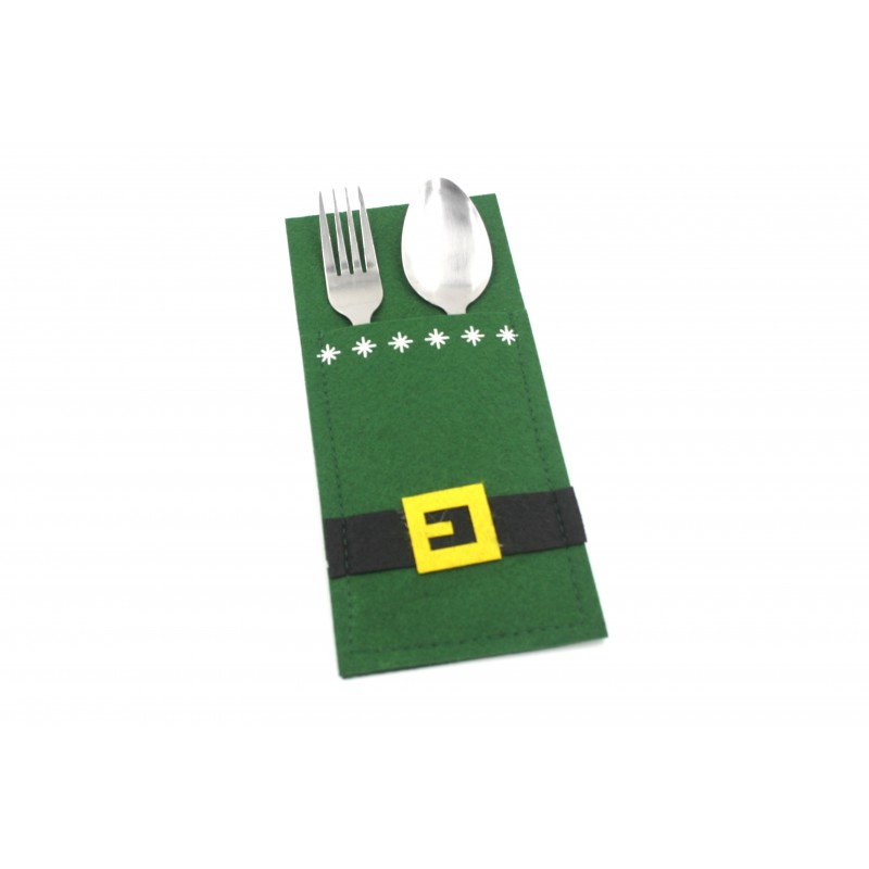 Χριστουγεννιάτικη θήκη για μαχαιροπήρουνα υφασμάτινη Πράσινη 22x10cm