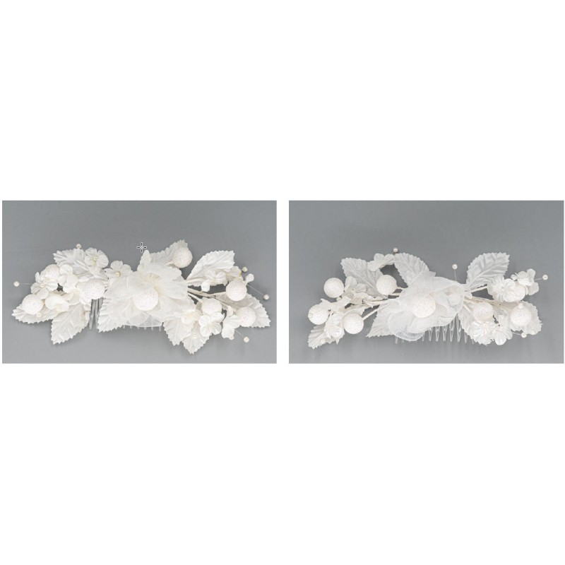 Χτενάκι γάμου οργαντίνα και σατέν με πέρλες